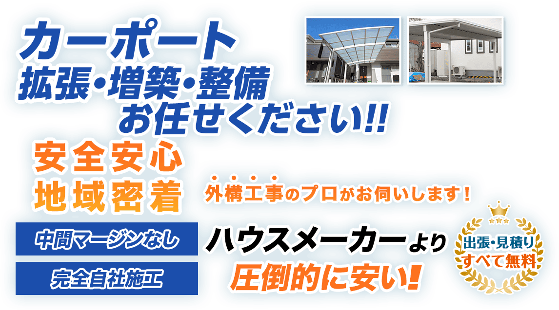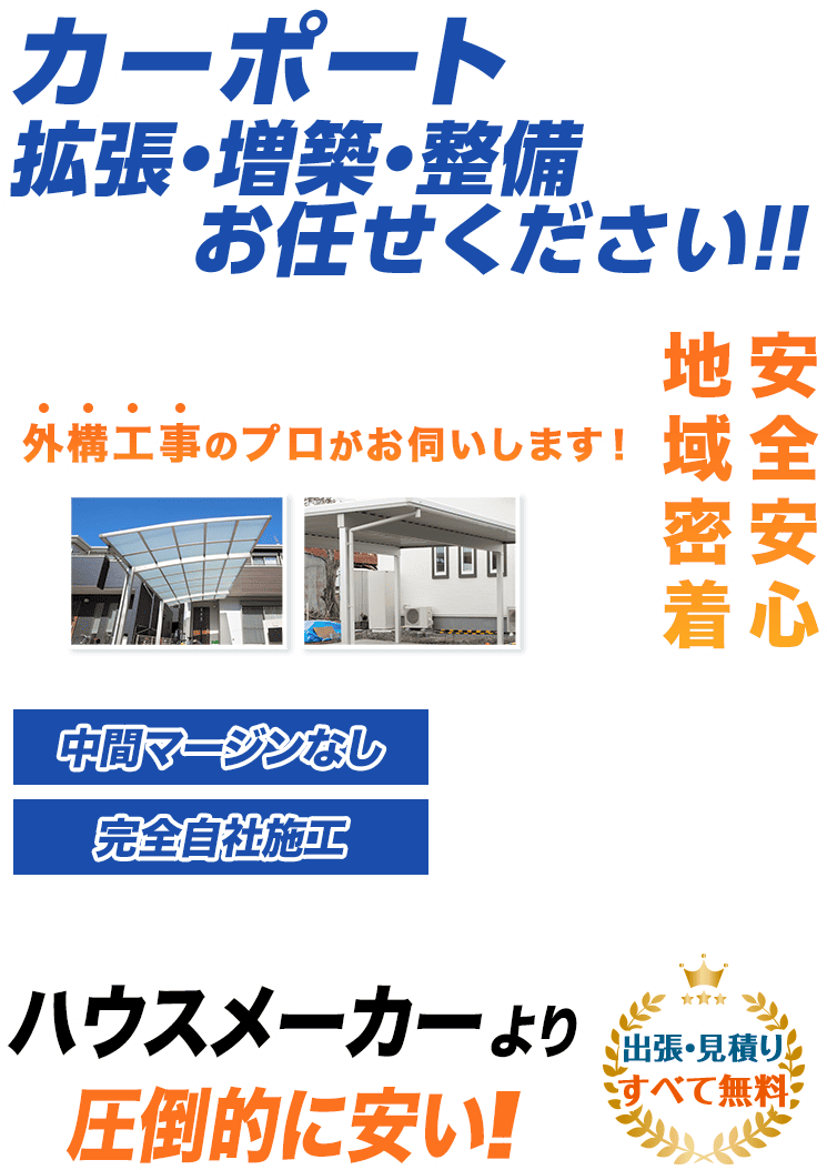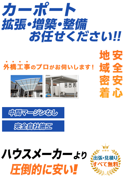駐車場やルーフ新設・増設・拡張は 駐車場やルーフ新設・増設・拡張は